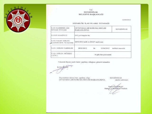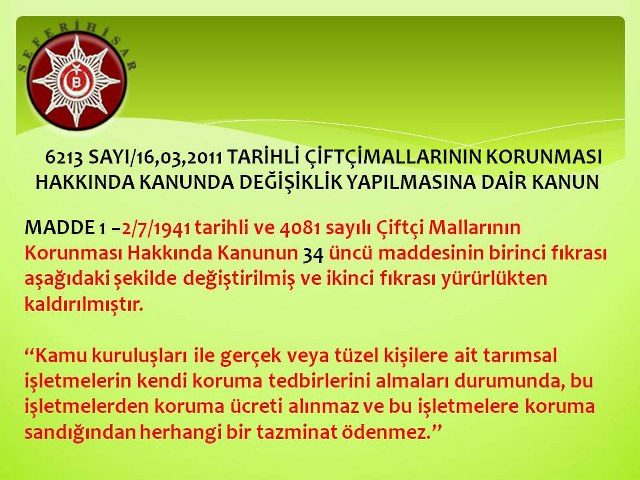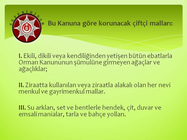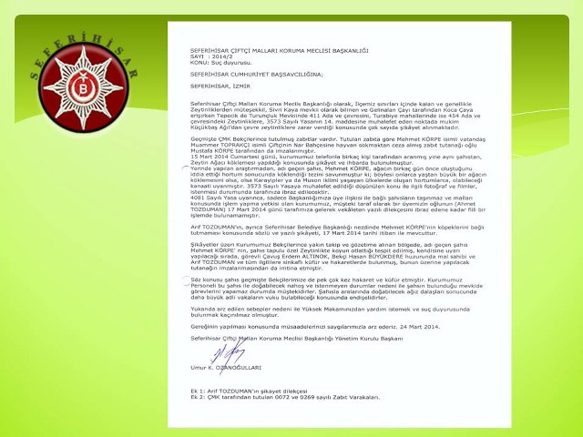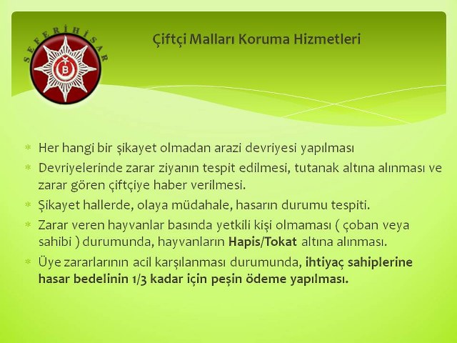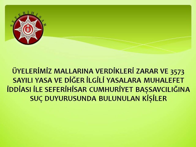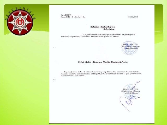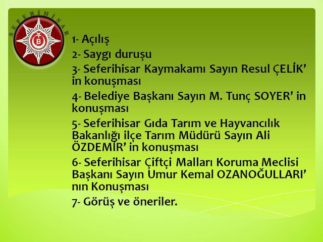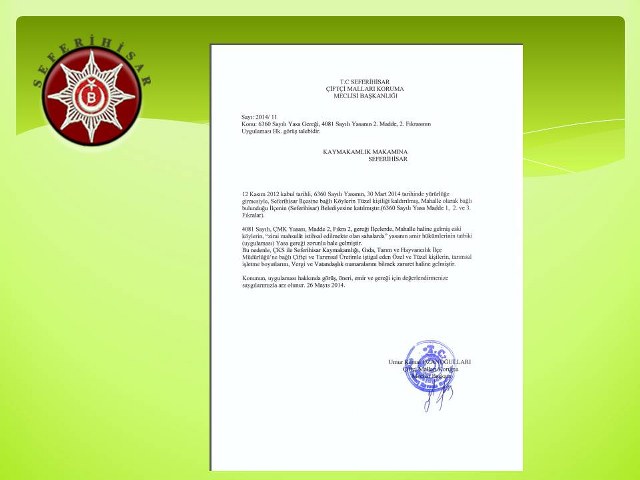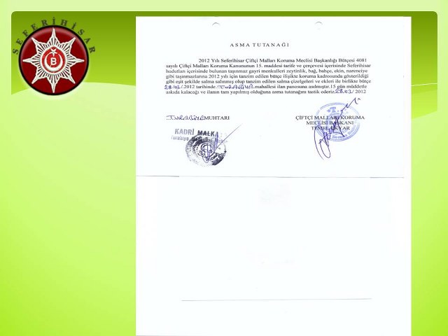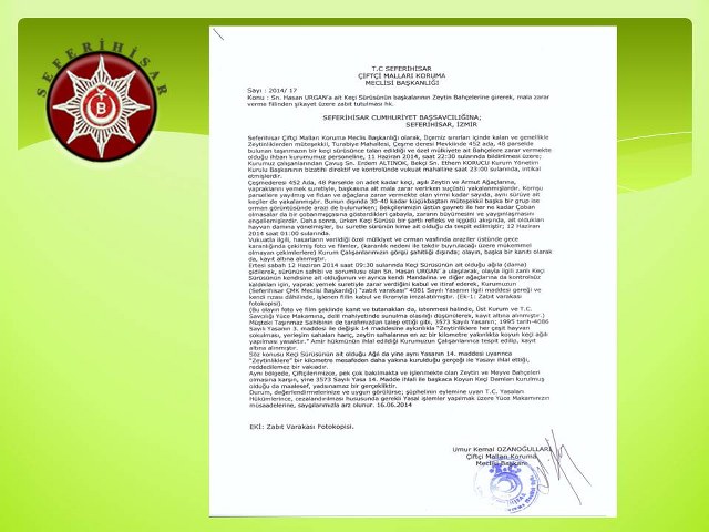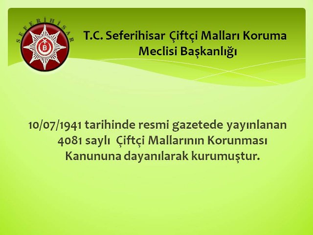 Seferihisar Çiftçi Malları Koruma Meclisi Başkanlığının Hazırlamış olduğu Sunum;