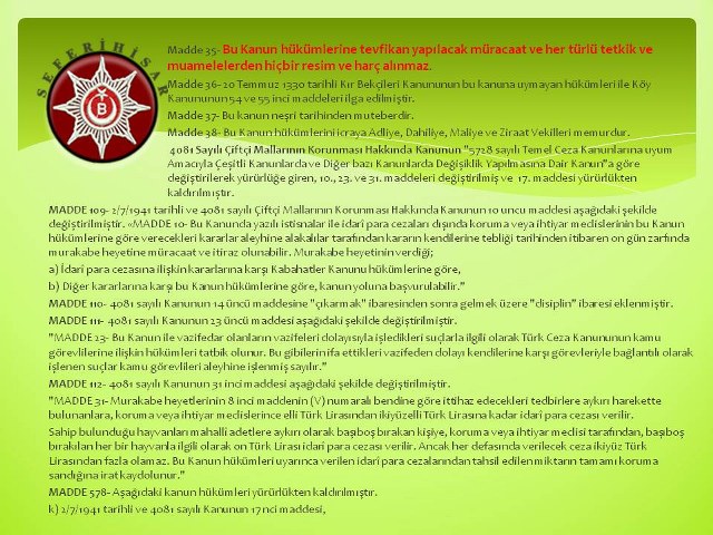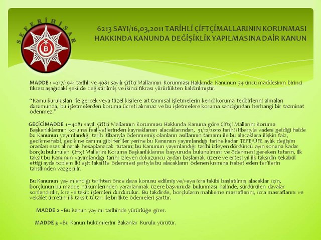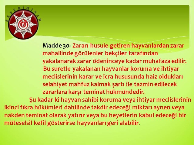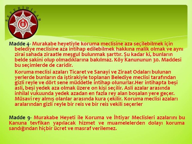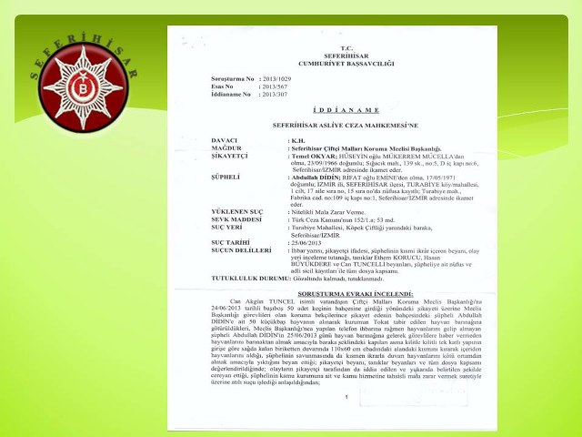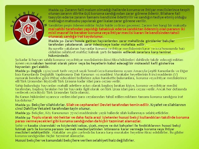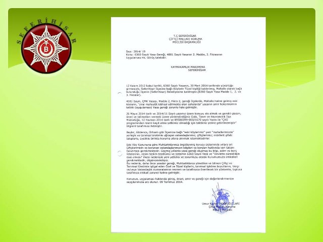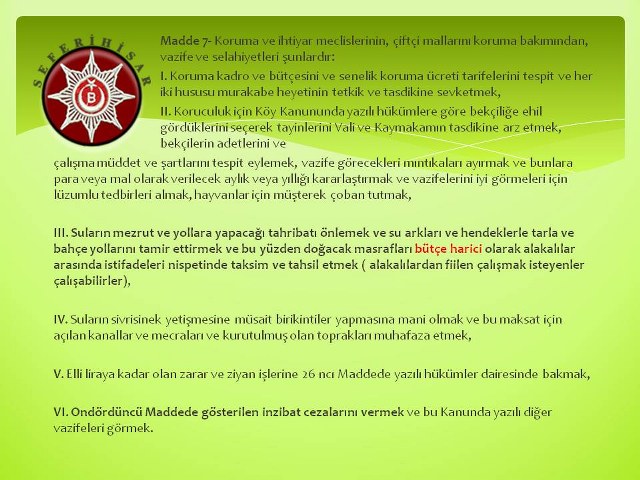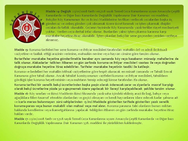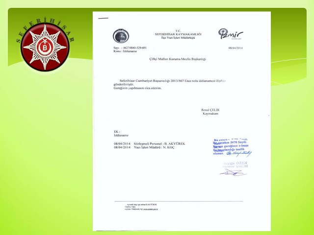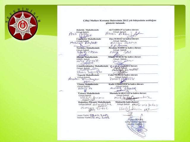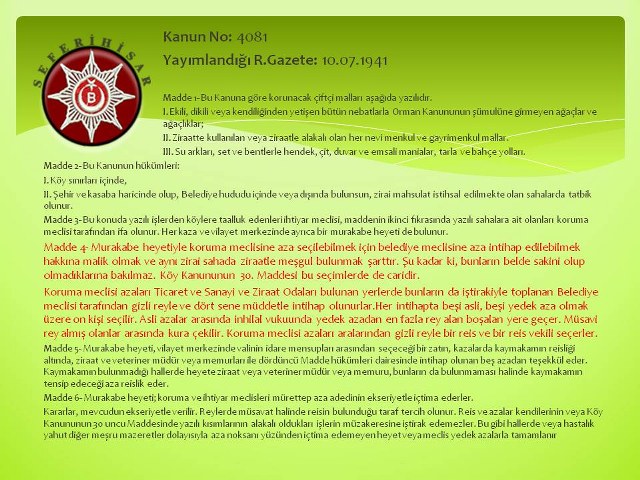 Seferihisar Çiftçi Malları Koruma Meclisi Başkanlığının Hazırlamış olduğu Sunum;