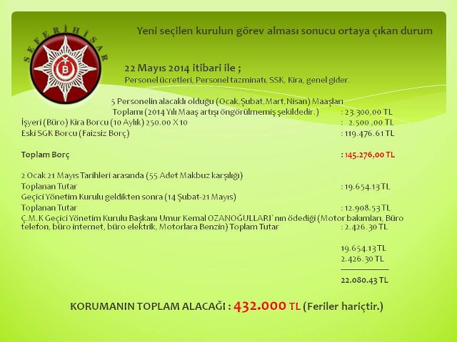 Seferihisar'da Çiftçi Malları Koruma Meclisi 2012 Yılında 10 Yıl geriye kadar giden zamanlarda Üyelerinden yıllık munzam sandık aidatlarını almakta zorluk çekmiş ve tahsilatlarda başarısız olmuştur. Bu nedenle geçmiş yıllarda, uzun dönemler boyunca çalışanlarına SSK borçlarını dahi ödenmemiştir. 2011 yılı Mart ayında Yasanın 4081 Sayılı Yasaya yaptığı değişiklikten sonra tahsilat da başarı daha da zorlaşmış ve Seferihisar ÇMK 2012 yılında emekli olan bir işçisine çok zorlanarak 1 yıl içersinde Emeklilik tazminatını ödemiş ve ardından da Haziran 2013 tarihinden itibaren çalışanlarına maaş ödeyemez yada ödesede son derece geriden gelen ve zaman zaman 6-7 ayı bulan gecikmelerle, geçmiş aylardan kalan borçların bir kısmı ödenerek yapılır hale düşmüştür. Aynı dönemde 1 yıldan fazla kira ve 3 yıldan fazla muhasebe borçlarını ödeyememiş zaman zaman da telefon ve İnternete olan borçları nedeni ile kesintiye uğramıştır. Son bir kaç yılda Kurumu hiç bir taşıtı yoktur. Personelin kendine ait işe gelmek için kullandıkları motosikletler Kurumun arazi kontrol sorun ve şikayet giderme görevlerinde personele rica ve minnet karşılığı ve Kurum tarafından yakıtları sağlanarak yada sözü geçen taşıtların arızalanması durumunda Kurum Yönetim Kurulu Üyelerinin cebinden ödedikleri maddi bedellerle acze çözüm kavlinden hallerle giderilmiş duruma gelinmiştir.